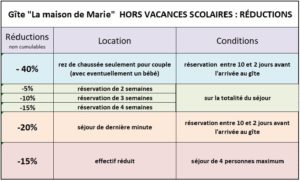 Possibilité de réservation de dernière minute : (10 à 2 jours avant le séjour) -20%